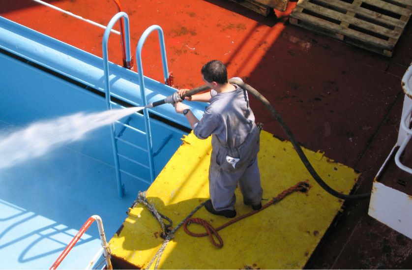 Final Rinse and Inspection: Thoroughly rinsing and checking the surface to ensure spotless results.