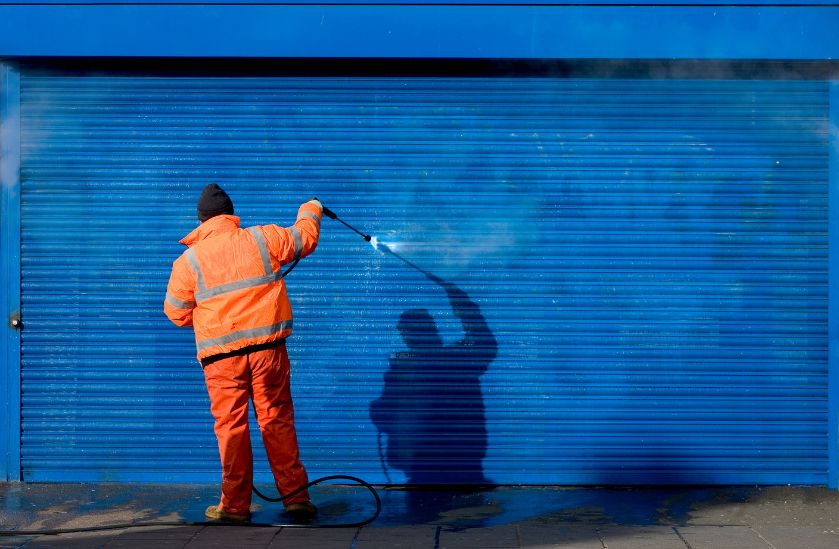 Power washing for sidewalks, walls, fences, and signage